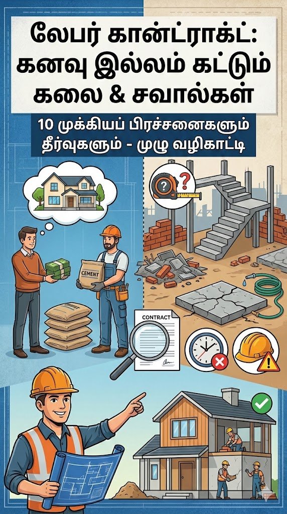 வீடு கட்டுவது என்பது ஒரு சாதாரண நிகழ்வு அல்ல; அது பலருடைய வாழ்நாள் கனவு மற்றும் மிகப்பெரிய நிதி முதலீடு. இன்றுள்ள சூழலில், கட்டுமானச் செலவைக் குறைக்கவும், தரமான பொருட்களைத் நாமே வாங்கிப் பயன்படுத்தவும் பலரும் தேர்ந்தெடுக்கும் முறைதான் “லேபர் கான்ட்ராக்ட்” (Labour Contract). அதாவது, சிமெண்ட், கம்பி, செங்கல், மணல் போன்ற அனைத்துப் பொருட்களையும் வீட்டின் உரிமையாளர் (Client) வாங்கித் தருவார். அதை வைத்துப் பில்டிங்கைக் கட்டித் தரும் வேலைக்கான கூலியை மட்டும் ஒப்பந்ததாரர் பெற்றுக்கொள்வார்.